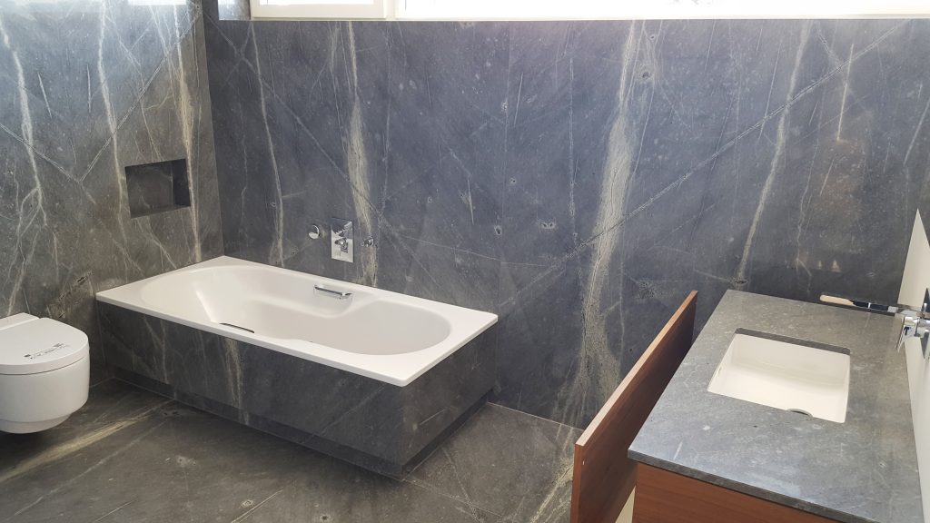 - Sandstein wird aufgrund seiner sanften, erdfarbenen Töne geschätzt. Dieser Naturstein bringt ein Stück Natur ins Badezimmer und sorgt für eine harmonische Atmosphäre. Obwohl Sandstein etwas weicher und daher empfindlicher ist als andere Natursteine, kann er mit der richtigen Pflege und Imprägnierung problemlos in Badezimmern eingesetzt werden.
