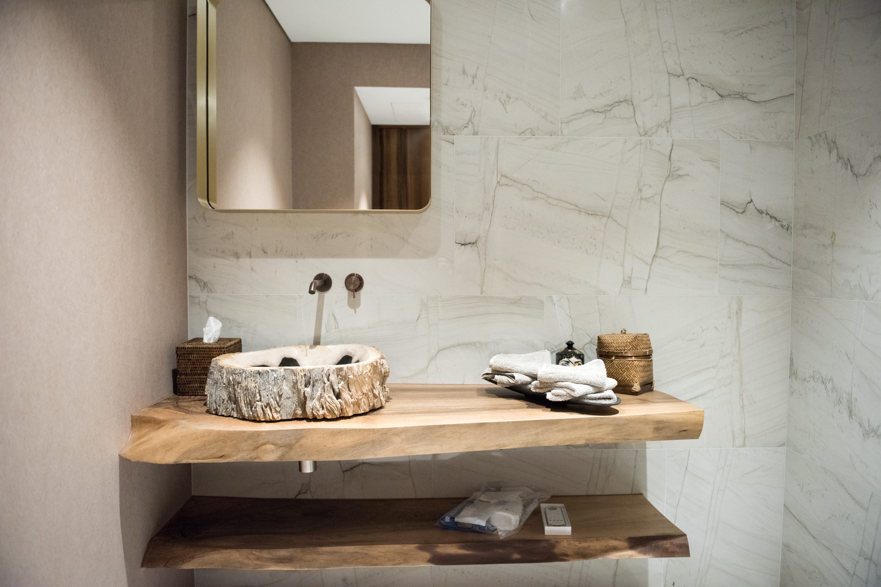 - Neolith überzeugt durch seine extrem dünne Struktur und seine Robustheit. Besonders in minimalistisch gestalteten Badezimmern findet Neolith als Wand- oder Bodenbelag sowie als Waschbeckenmaterial Anwendung. Der Stein ist resistent gegen Flecken und Wasser, was ihn pflegeleicht und langlebig macht.