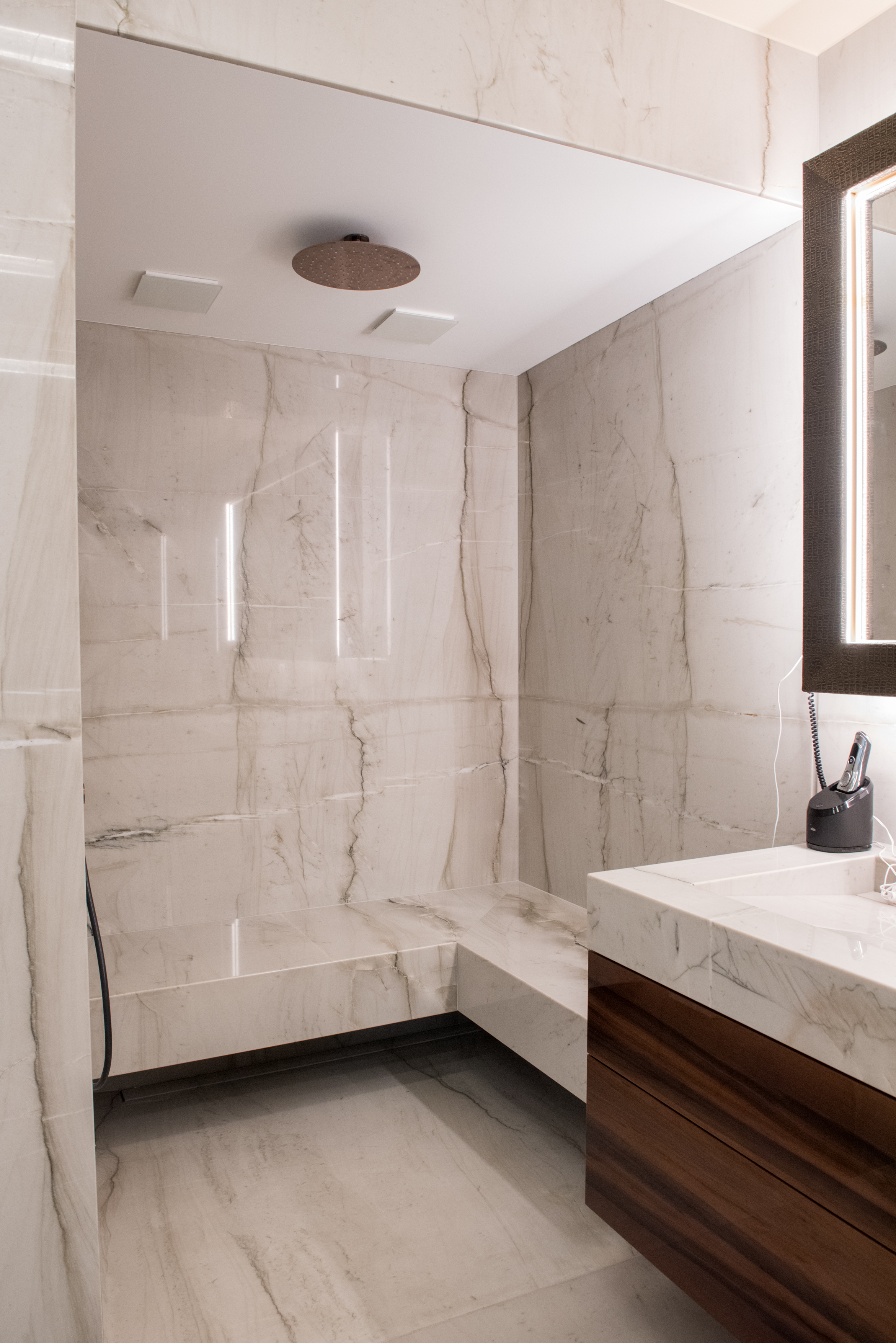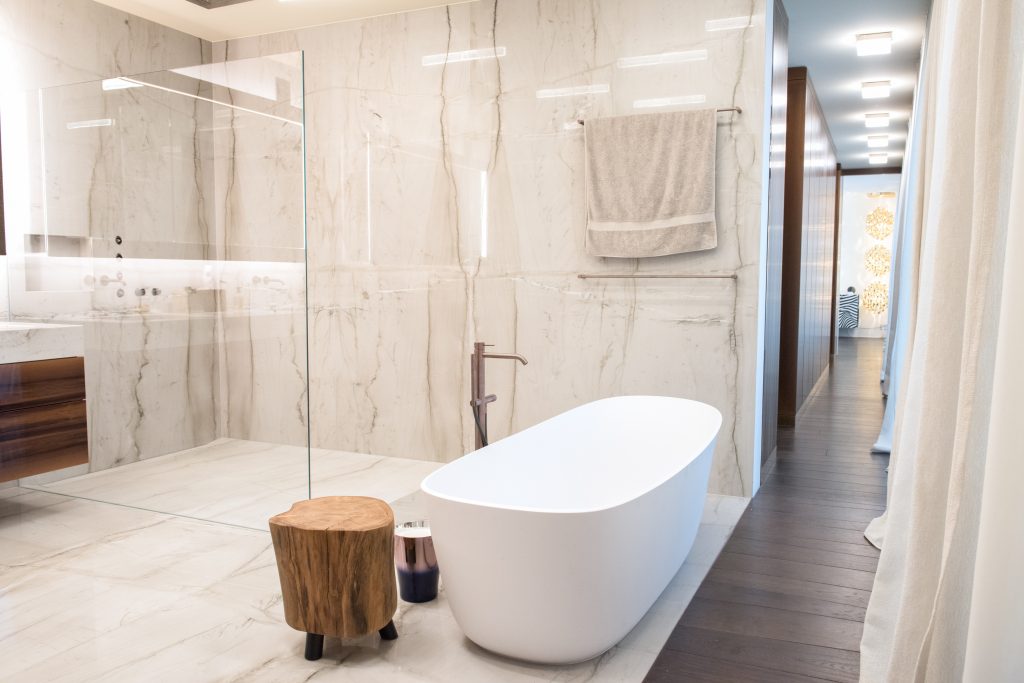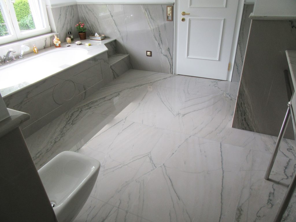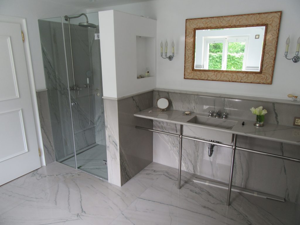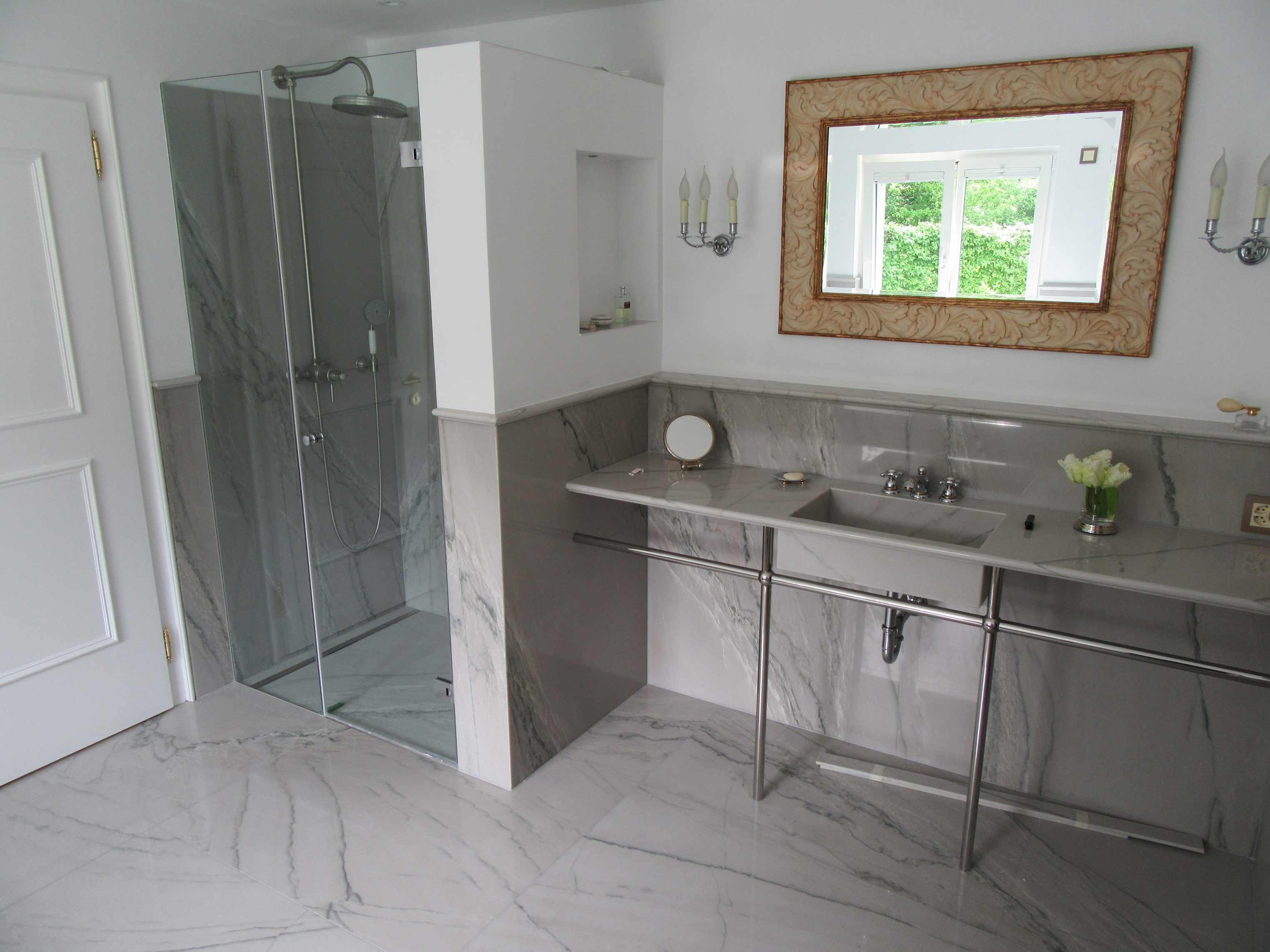 - Marmor ist seit jeher ein Symbol für Luxus. Mit seinen charakteristischen Aderungen und Farbschattierungen verleiht er jedem Bad eine edle und zeitlose Optik. Ob als Bodenbelag, Waschtisch oder Wandverkleidung – Marmor fügt sich perfekt in verschiedene Designkonzepte ein, von klassisch bis modern. Allerdings ist er etwas pflegeintensiver, da er empfindlich auf Flecken und Kratzer reagieren kann.